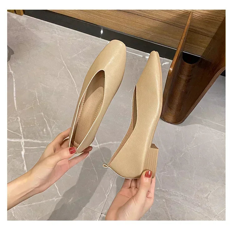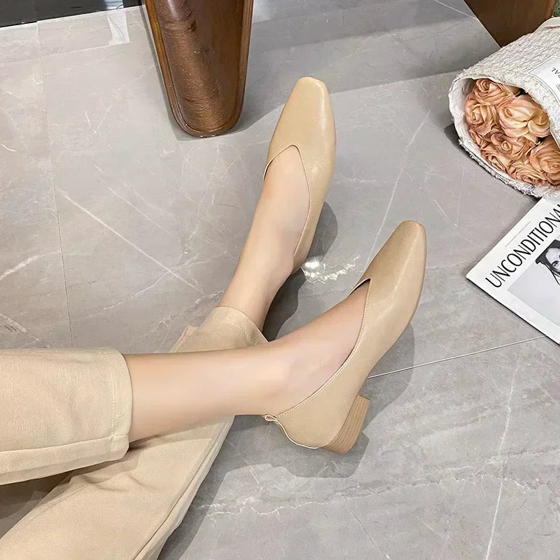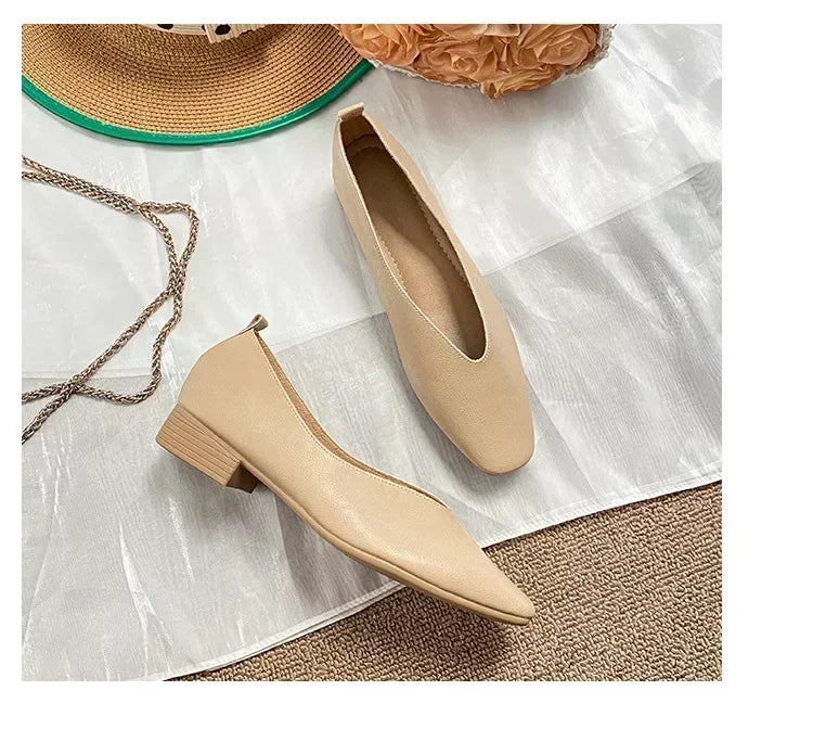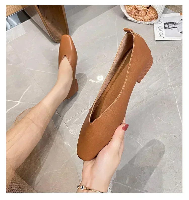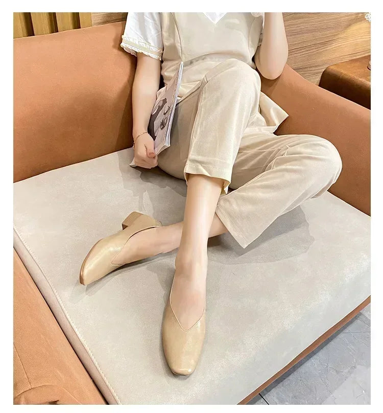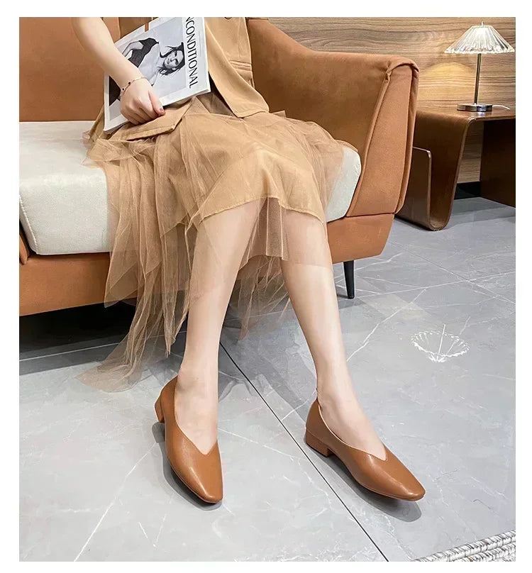 Women’s Genuine Leather Loafers – Low Heel, Round Toe, Casual Style